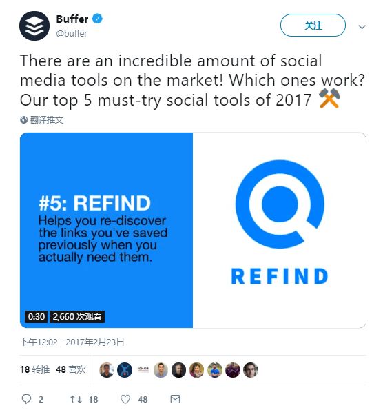 注:Buffer的Twitter账号粉丝数比Facebook和Instagram多。