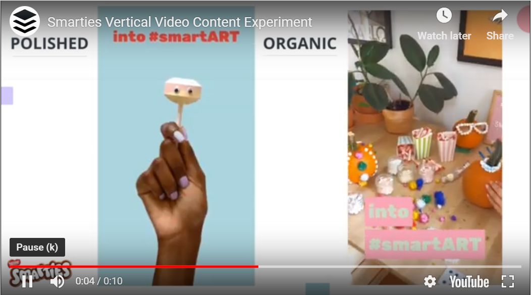 以品牌Smartie的视频为例,就前10秒播放量来看,原生态视频的成本降低了50%,从效率来看,产生了两倍多的吸引力。