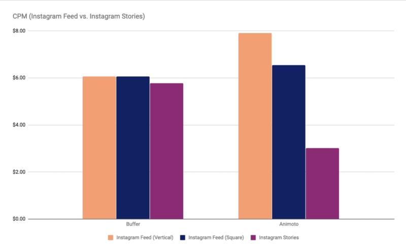 在Instagram上,竖屏、方形和故事(即Stories,即微博故事、朋友圈时刻视频)对比,竖屏故事成本最低,如果按千次展示计费(CPM)和CPC计费,故事最高可节省57%。