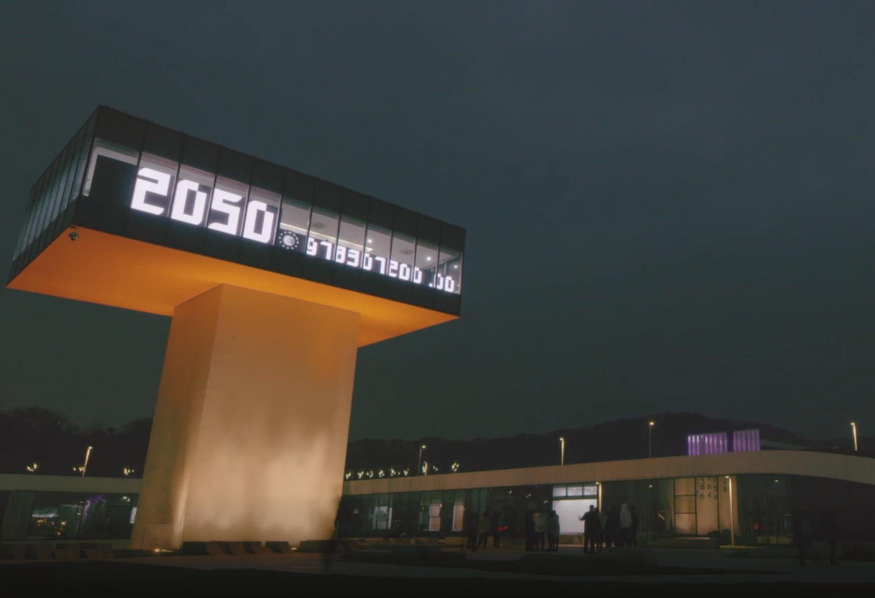 2019年1月1日,瞭望塔的屏幕墙上,这里的“年青人”(同“年轻人”)开始了从那时到2050年,以秒为单位的倒计时。