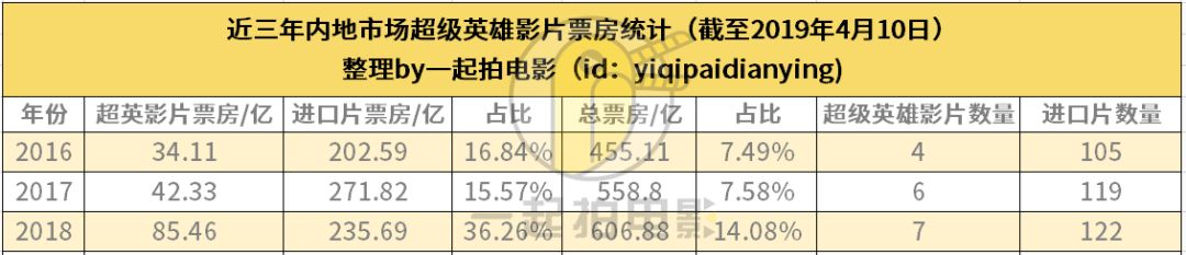 一方面是国产片和批片的票房份额的相对减少,另一方面是超级英雄电影在票房上的相对增长,此消彼长,超级英雄电影在今年市场的地位自然突显出来。