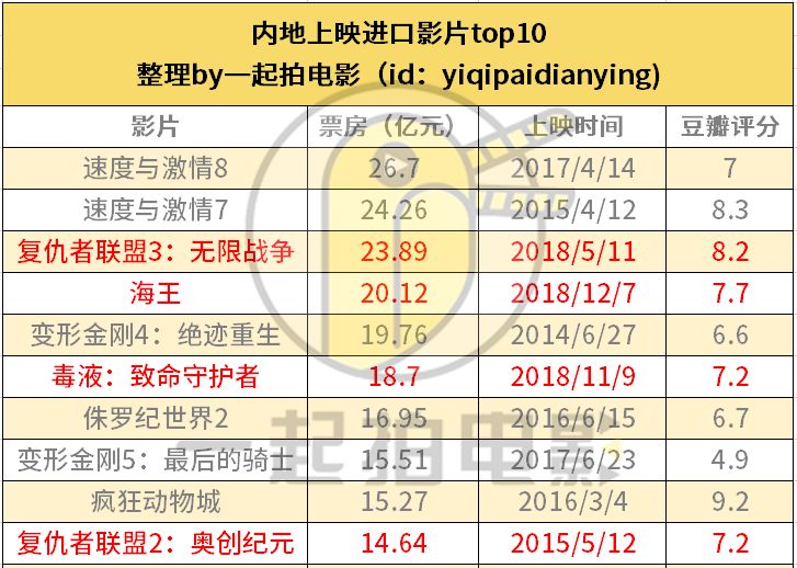 (红色字体标注的影片为超级英雄影片)