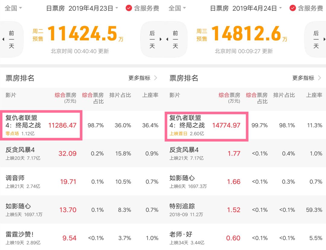 从《复仇者联盟4》在上映前几天就已经开创零点场,带动“天价”电影票讨论下,这部影片也将毫无悬念开创包括首日票房以及总票房在内的多项历史纪录。