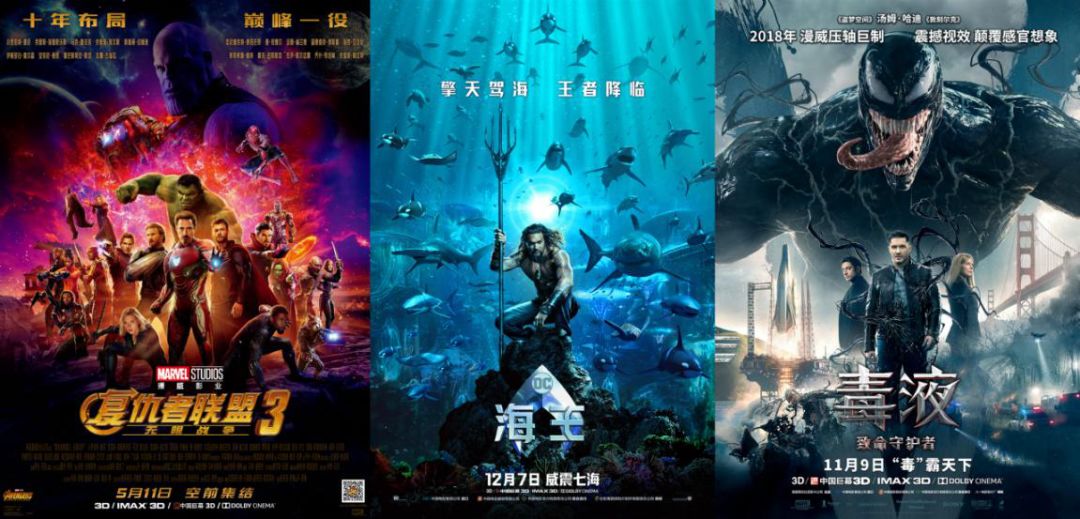 2017年,内地电影市场上映的超级英雄影片上升到6部,其总票房也改写为40亿+;而2018年,7部超级英雄电影不仅贡献了85亿元的总票房,而且还破纪录地产生了《复仇者联盟3》《海王》《毒液》票房在20亿体量的单部影片。