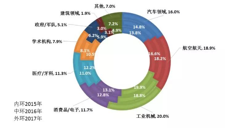 如前文所述,3D打印最先应该突破的领域就是航天航空。而铂力特公司增材制造的零件己经批量应用于7飞机型号,17个航空发动机型号,2个火箭型号,3个卫星型号,5个导弹型号,2个燃机型号,1个空间站型号,涉及C919。2016年度、2017年度及2018年度,公司来自该航天航空的收入占营业收62.4%、54.3%、62.2%。