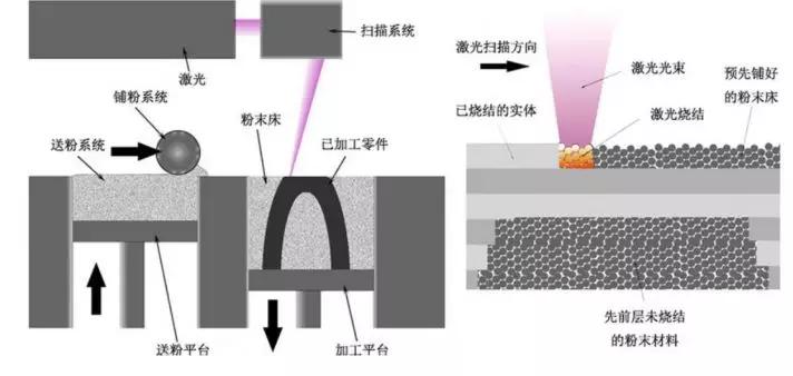 其中发展最早、使用最广泛的是激光选区熔化SLM(selective Laser Meltillg,SLM)和选择性激光烧结成型技术(Selective Laser Sintering,SLS)。SLM技术是采用激光有选择地分层熔化烧结固体粉末,在制造过程中,金属粉末加热到完全融化后成形。