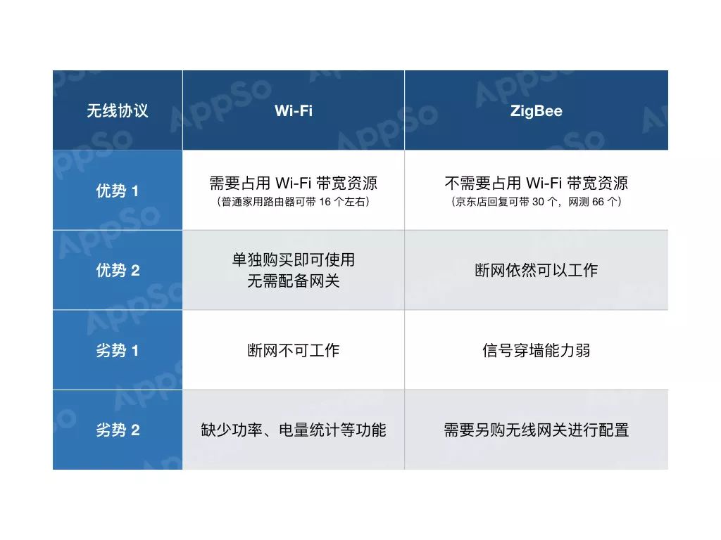 那么问题又来了:Wi-Fi 和 ZigBee 两个协议哪个更好?根据我自己的使用经验,我给大家整理了两个无线协议的主要优劣势: