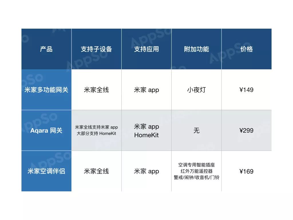 有一个你直接搜索搜不出来的是,其实米家的空调伴侣,同样也是自带网关功能的。废话不多说,上表: