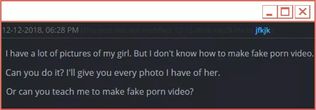 △这位屌丝,得不到自己暗恋的女生,收集了许多她的照片,在各个社区求助,想自己动手做一部换脸黄片。他也在reddit上发过,帖子已经被封了