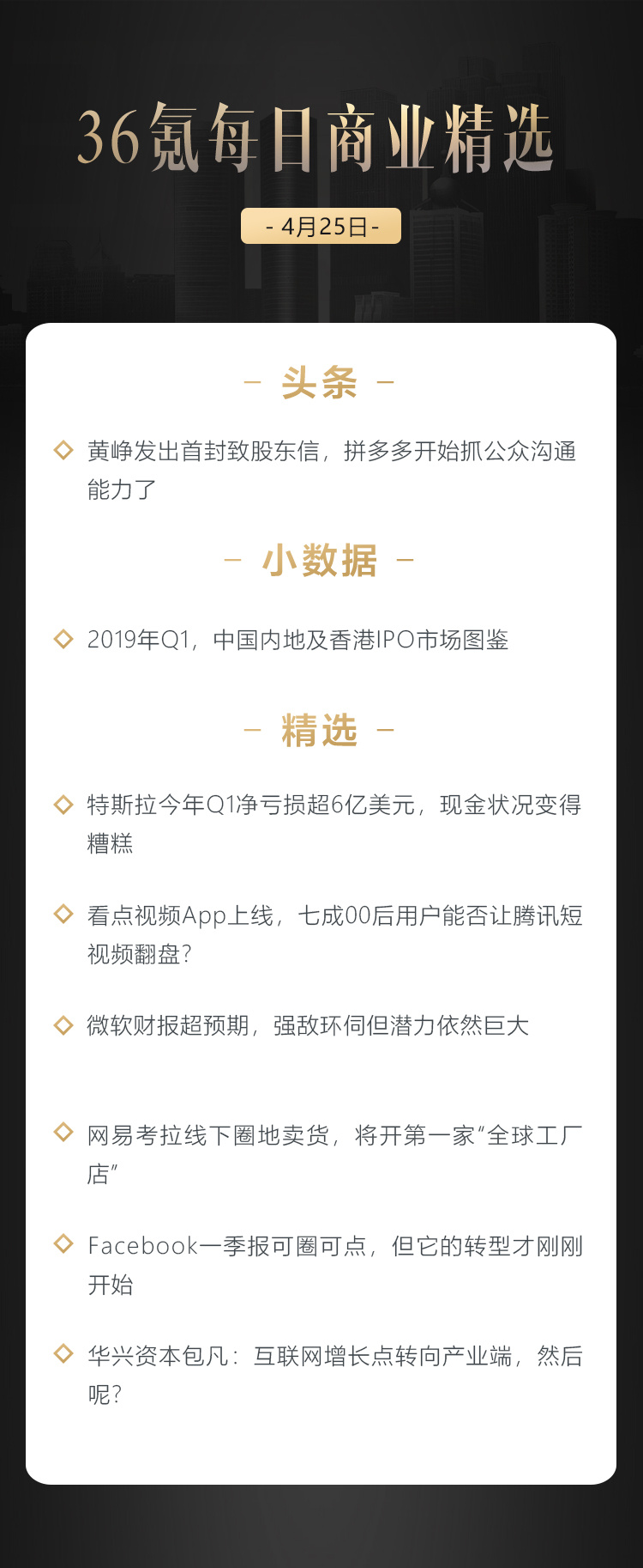 本文来自36氪付费栏目《36氪每日商业精选》——4月25日