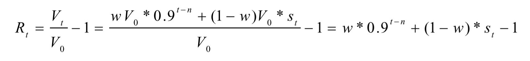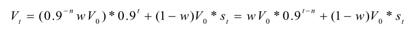 假设乐视网在第t0+t日打开跌停板可进行卖出交易,基金将在当日收盘时恢复乐视网的真实估值,但此时乐视网已经连续跌停了t次,此时基金的复权单位净值Vt可以表示为: