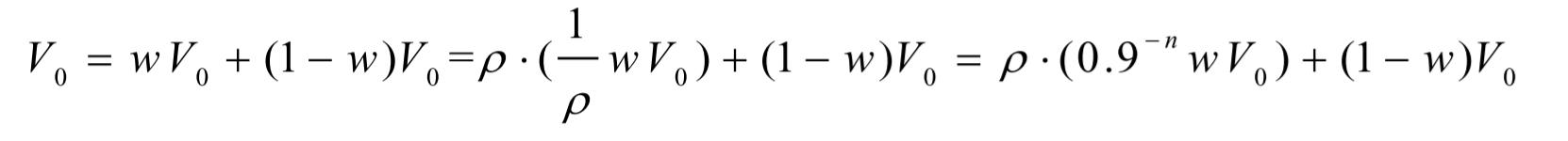 同时,假设该基金已经对乐视网进行下调估值,比例为p=0.9的n次方,其中 n(目前基金普遍预估的跌停板为13次)为估值下调预估的连续跌停次数。所以,在t0日的基金复权单位净值v0可以进一步分解为: