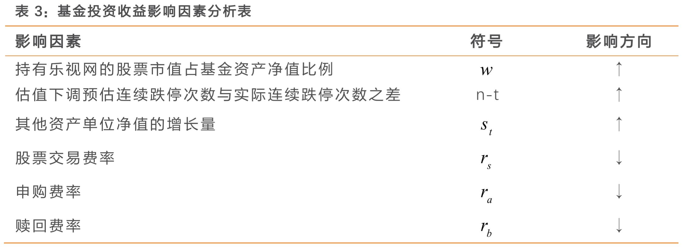 天风证券分析,从复牌第一日到打开跌停板期间的投资收益率Rt,与w(乐视网的股票市值占基金资产净值比例)、n-t(估值下调预估连续跌停次数与实际连续跌停次数之差)、St(其他资产单位净值的增长量)有关。不过,由于实际操作中还需要考虑股票交易和基金交易层面的细节问题,比如基金交易的交易费用和滑点、普通投资者申购和赎回基金的费用等,这些亦会影响最终的收益。
