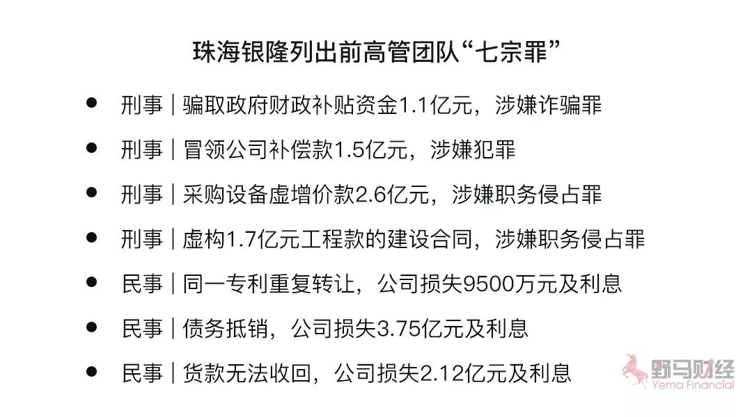 2018年年底,珠海银隆被曝出此前管理上存在问题,公司在微信公众号上发布声明,控诉原董事长魏银仓、原总裁孙国华涉嫌通过不法手段,侵占公司利益金额超过10亿元。