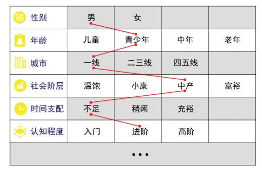 图1-1是笔者简单列出几项划分维度作为示意,不同的群体由于他们的社会属性,消费习惯,认知能力都存在差异,只有把他们聚类群分后,才能更清楚你所要面对的用户群体,需求与体验的分析研究才能有的放矢。
