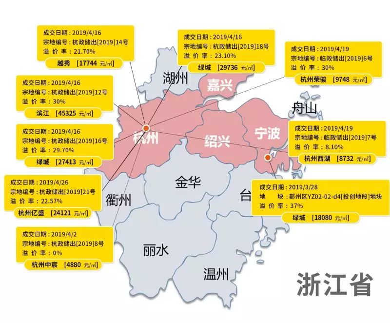 然后是浙江,浙江的土地出让虽然没有那么高频,但是每一块地都意义非凡,杭州的滨江已经购得楼板价4.5万+的用地,我似乎马上也要听到各种保本价的故事