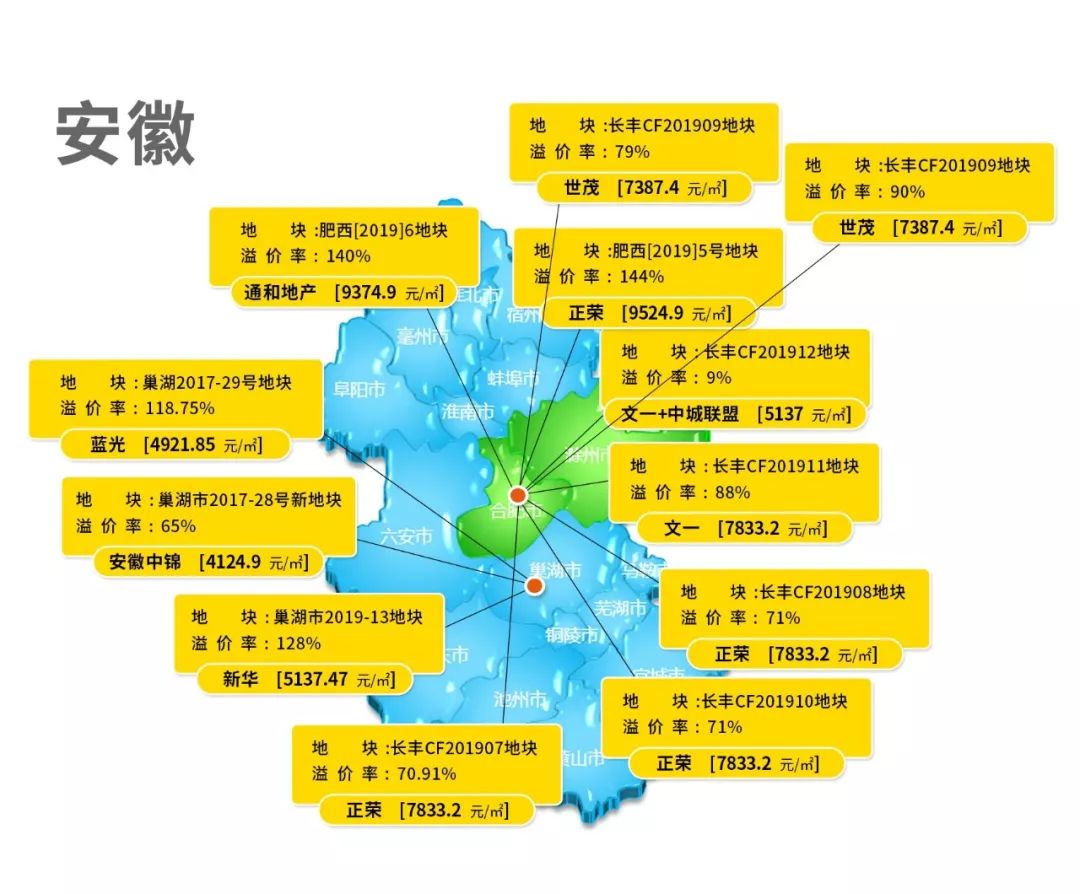 而安徽合肥一枝独秀的是溢价率,正荣、世茂等开发商用一次次的举牌,直接将城市的溢价提升到了70%-150%。如果没有意外,未来合肥的土地出让溢价率会降低,因为初始土地出让金额会大幅提升