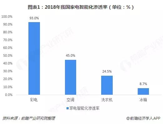 此外,还有一些远程控制、语音对话、影音娱乐等功能,我们暂且按下不提。实际情况,在家电智能化方面,冰箱的渗透率最低,2018年冰箱智能化渗透率仅8.7%,两年提升不到5个百分点,作为对比,彩电2018年智能渗透率是93%。