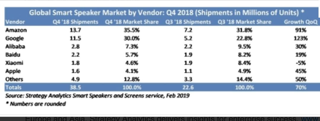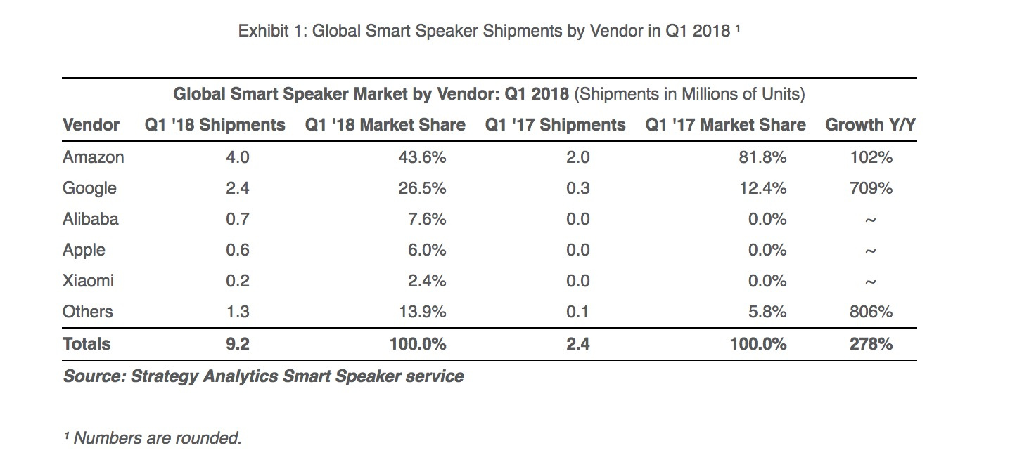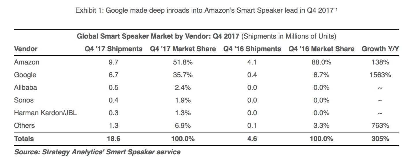 Strategy Analytics 2018年一季度智能音箱市场报告