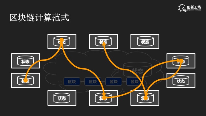 从计算的架构来讲,在前面一个时代,计算是在这边完成,我只把结果告诉你。在区块链新的计算方式当中,首先每一个用户的节点上面,都有一份完整的规则,它知道这个计算应该怎么完成,这意味着当一个规则运行在这个网络里面的时候,规则一旦被部署,所有人参加进来,任何人都没有办法篡改规则,因为大家都知道这个规则,你改了,你做了这个计算,这个计算结果不会被大家承认。使得在这样一个新的计算范式下面,有一些独特的能力。