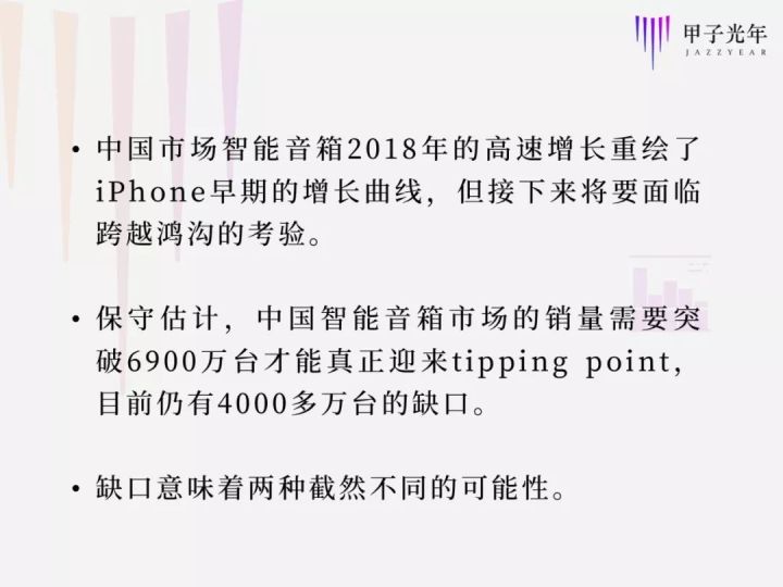 所以,如今的智能音箱市场还未到tipping point。