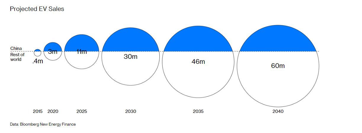 预测的电动车销量(中国占)
