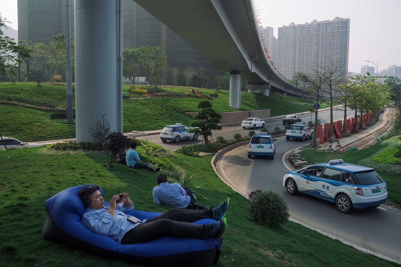 深圳的的士司机在出车间隙休息