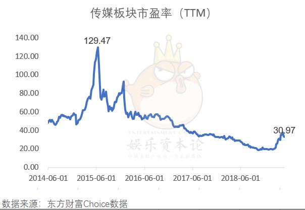 从A股市场环境来看,影视公司股价已经企稳回升,板块市盈率也从历史低谷爬出。