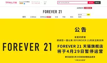 因为近几年经营始终不见起色,Forever21在3年里关闭了200多家门店,撤出天津、杭州、重庆和台北,王府井街上那家标志意义的首店,也时隔5年后匆匆谢幕。上周,它在京东和天猫平台上的旗舰店也打出了停止营业的通知。
