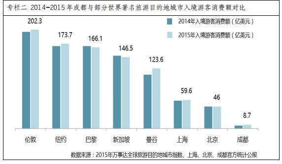 以成都为例,在接待入境游客数量方面,哪怕是与上海、北京相比,差距都是很明显的。