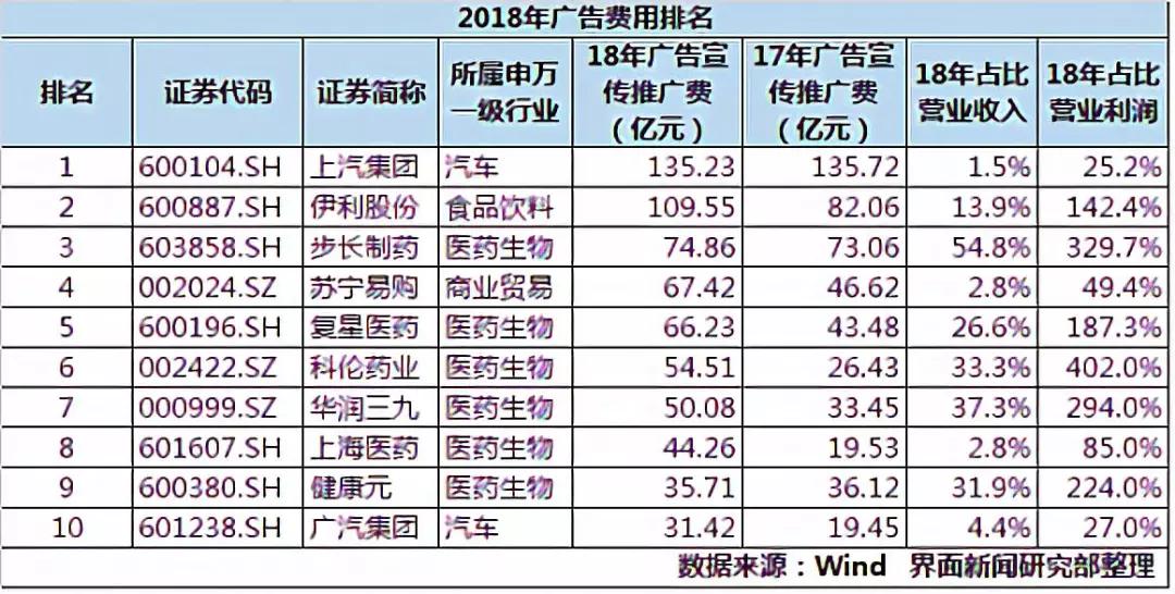这也正是所有医药企业都极力与政府打好关系的原因,尤其是有民族情怀加成的中医药企业。那么,这些企业的销售费用什么时候才能降下来呢?要知道,去年2319家上市公司里,广告费用排在前10名的公司中有6家都来自医药生物板块。