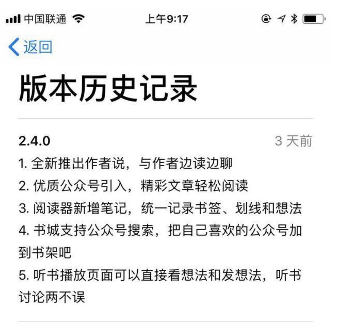 这并不是微信读书里首次出现公众号内容。2018年4月,微信读书2.4.0更新时就曾提及相关功能。而2017年9月2.2.0版本上线时,微信读书曾出现可查看书籍相关公众号文章的功能。从这一时间线来看,微信读书一直在尝试与公众号内容建立联系。