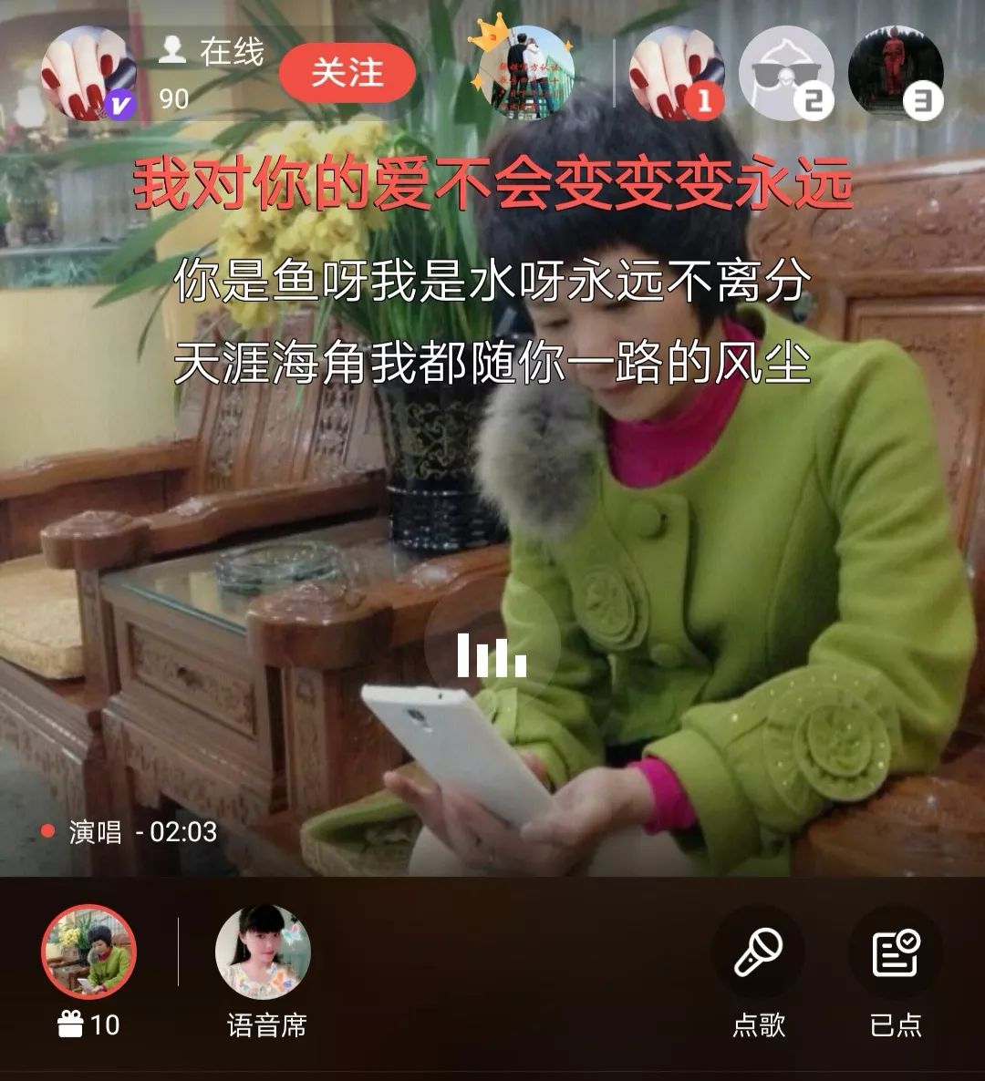从大清早到睡觉前,都有接连不断的歌友进行对唱。即便歌声没那么悦耳,也依旧有不少同道中人不停夸赞并且送出鲜花、金币。