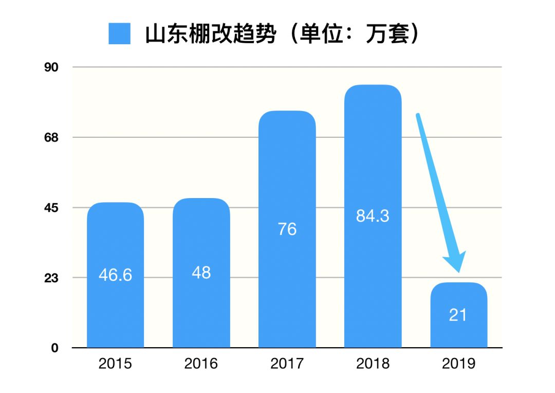 二是,凡事一定会有终点。数据显示,仅2015—2018年山东就棚改了260万套住房,城市面貌已经得到很大提升,多个城市市区出现「改无可改」的现状,再大刀阔斧地拨款改造,一定会破坏市场平衡。