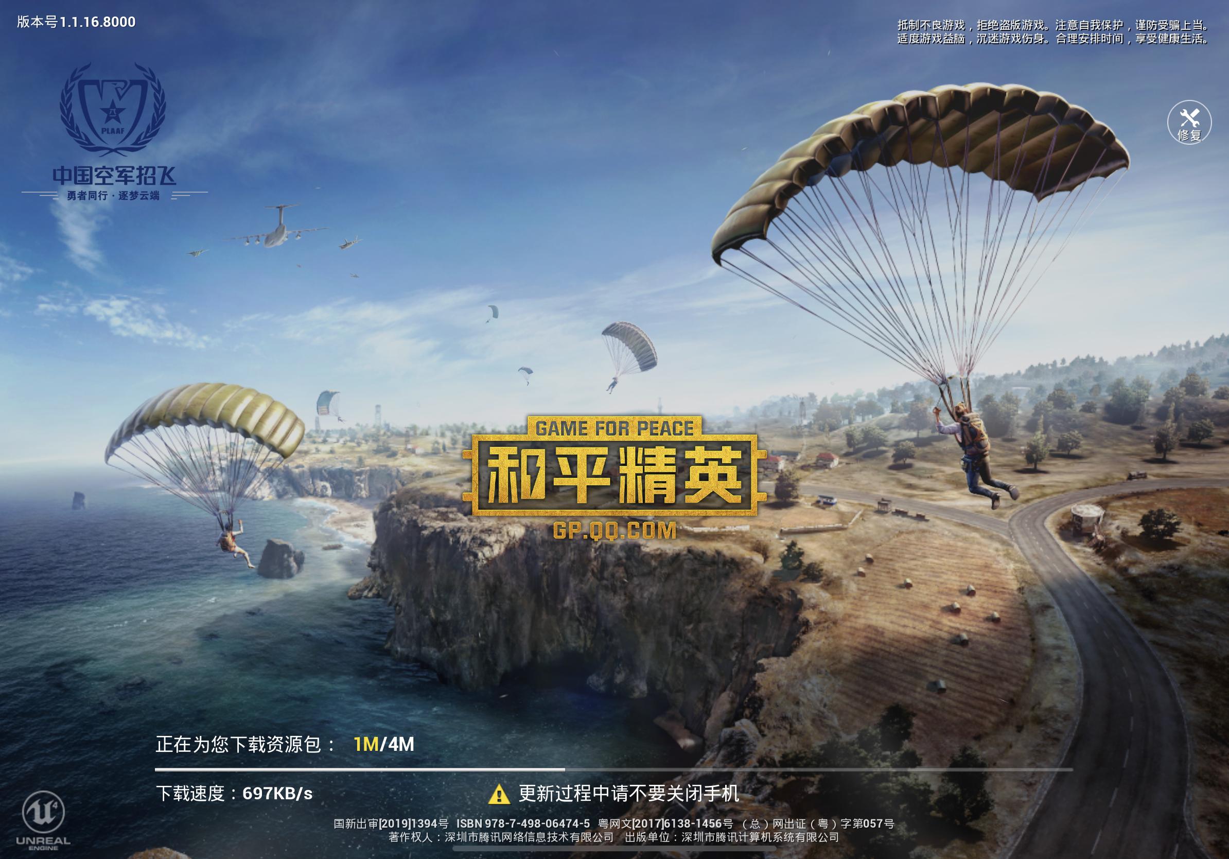 吃鸡毕竟有强大的群众基础,《和平精英》刚推出就吸引了大批量的更新和下载,一度造成服务器拥堵。耗时2个小时,我终于完成更新。登录界面与之前的《绝地求生》一样,可以游客、微信、QQ账号登录,之前的游戏数据,比如金币、好友等也直接继承到新游戏平台上。