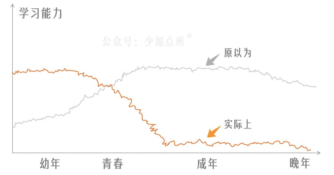 当然,我鼓励大家不要迷信任何权威,你同样应质疑“学习能力随年纪下降”的结论,“少加你有什么科学证据证实么?”