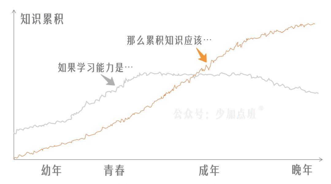 只要一个人的“学习能力”不是负数,累积的知识(新增知识减去遗忘部分)还是呈上升走势的。