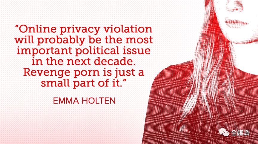 这样的事情还在继续。Emma Holten说,“2011年,当我成为色情报复的受害者时,我才意识到主动权根本不在我手里。”她的电子邮件被黑客入侵,引发网络上对她的谩骂浪潮。“照片被分享了一遍又一遍,但(每次)你就像第一次经历虐待一样。”