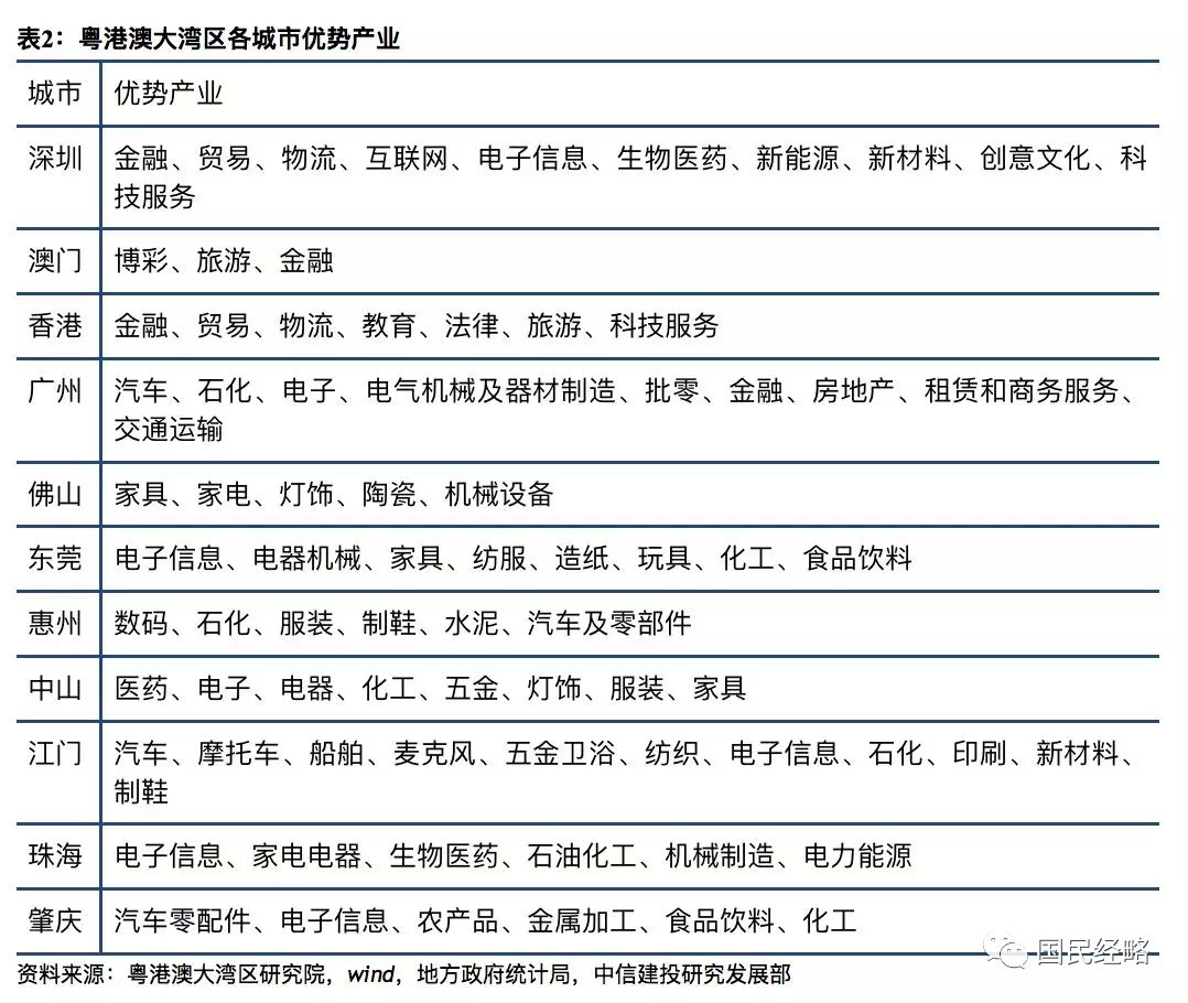 香港和深圳是金融中心,一个负责对接全球,一个负责对接全国,深圳和广州又是高科技和高端制造业中心,人才中心