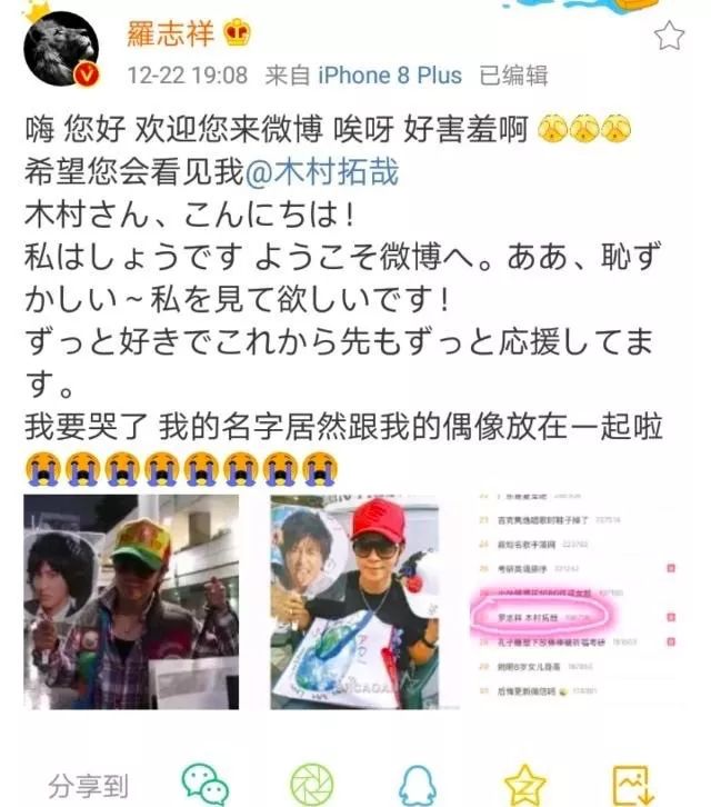 一位网友曾经在个人微博发表过一篇配文,“作为一名外籍艺人,不得不说,木村拓哉身上,真的有很多值得让人学习借鉴的品质。木村拓哉每次在微博上营业都让粉丝们觉得自己是真的在被关心着,国内某些艺人们,真应该跟他好好学学。”