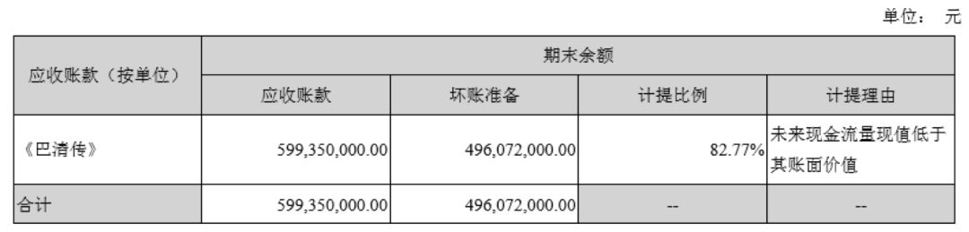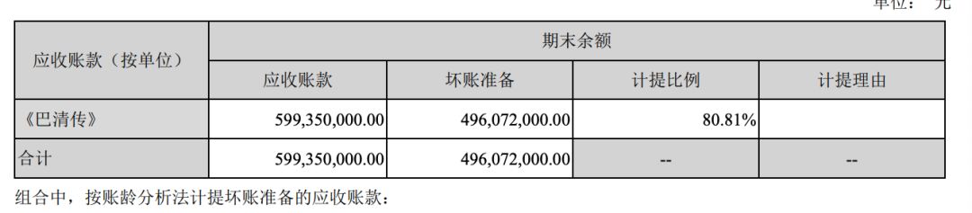 限古令、艺人负面新闻缠身,让《巴清传》的计提坏账近5亿元。
