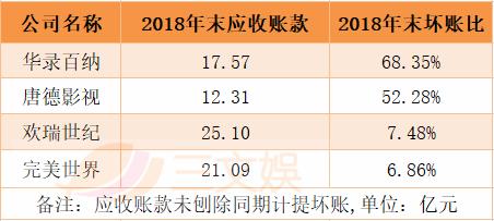 除了唐德影视,华谊兄弟和欢瑞世纪等公司,也直接在财报中明确提及了积压剧对于公司营收产生影响,如果影视剧款项不能及时收回,则意味着将有大笔金额转为坏账。
