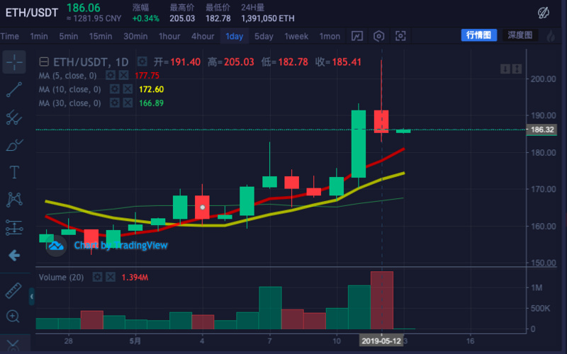 火币pro数据显示,本周,ETH 价格大幅上涨,一度突破200美元;随后价格回调,周内收于 185.41 USDT,周内涨幅 13.7%,站上 5 日均线( 177.75 )和 10日均线(172.6 ),短期内价格可能继续回调或保持震荡。
