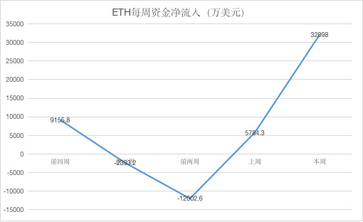 ETH 本周全网资金净流入 3.2 亿美元,环比上涨超过 450 %;资金净流入量持续增加,看涨预期较强,但短期内价格可能保持震荡或小幅回调。