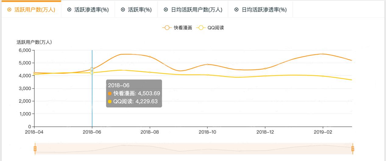 《QuestMobile中国移动互联网2018年度大报告》显示,在用户数据方面,快看漫画以4552万月活的数据,超过QQ阅读的3971万,特别是在去年暑假突破5600万用户月活量后,其月活量一直领先QQ阅读。