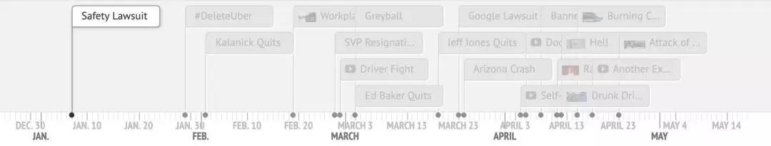 Engadget 写了一篇文章总结 Uber 的 2017 年,标题是《Uber 糟糕的,可怕的,不咋地的,坏到头的 2017 年》(Uber's terrible, horrible, no good, very bad 2017)。据 Engadget 统计,仅 17 年前四个月,Uber 的负面消息就达到了 20 条。