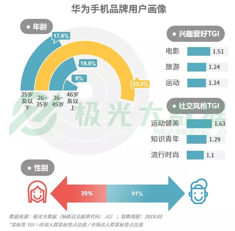 极光大数据显示,39%的华为用户为女性;华为用户倾向通过具有运动健美、知识青年属性的渠道交友