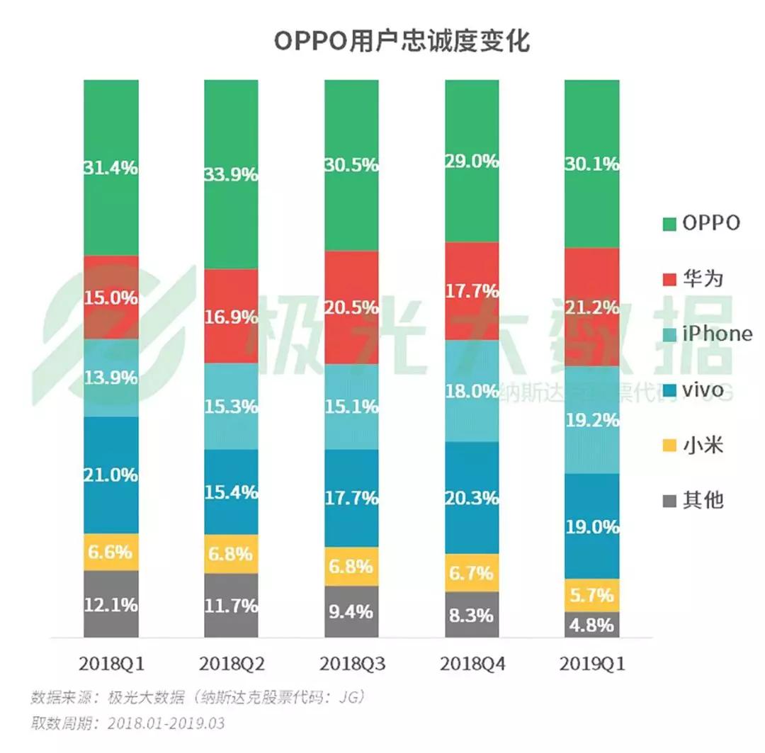 极光大数据显示,华为对OPPO换机用户的吸引力在这一季度上升至21.2%