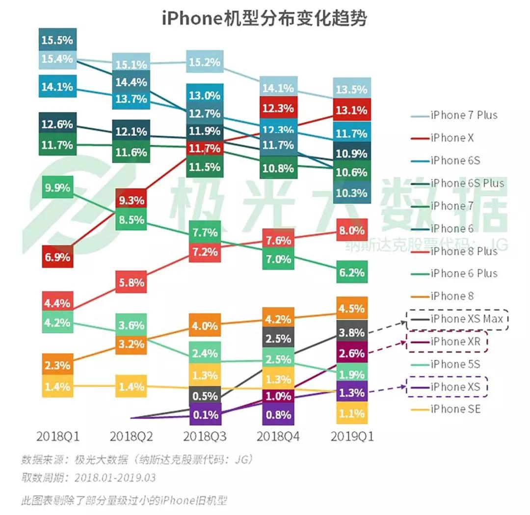 去年9月同时发布的iPhone XS和iPhone XS Max,品牌内部占比分别增至1.3%和3.8%