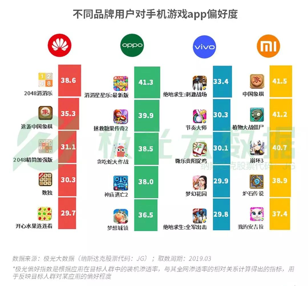 休闲类手游在各个手机品牌用户中均有很高的接受度